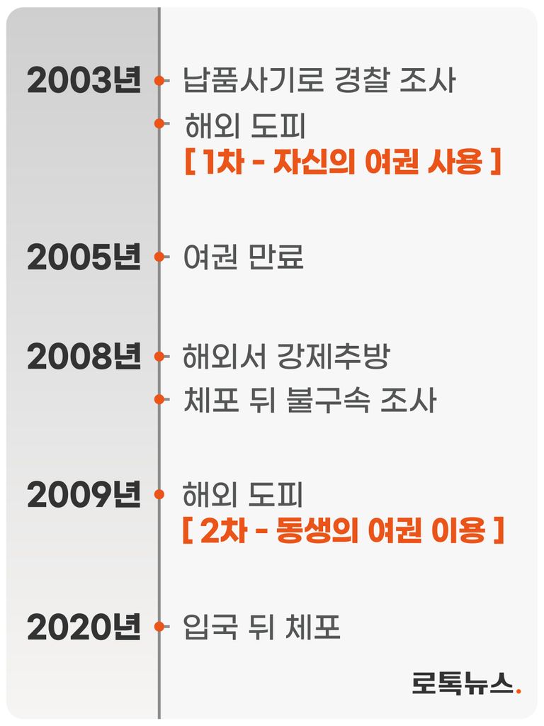 영영 자취를 감출 것 같았던 A씨는 무슨 이유에서인지 지난 2020년 다시 한국으로 다시 돌아왔다. 출입국 관리소는 과거 A씨 동생이 분실 신고를 했던 여권을 사용한 A씨를 적발했고, 이 일로 A씨는 그간 미뤄뒀던 모든 죗값을 치르게 됐다.