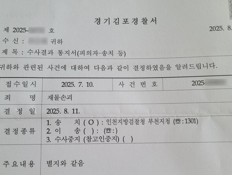경찰 수사 결과 통지서 모습. /연합뉴스