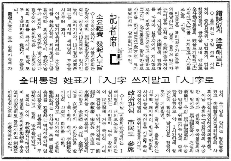 경향신문 1980년 12월 2일자에 “착오 없게 주의해달라”는 제목으로 다음과 같은 기사가 실려 있다.
