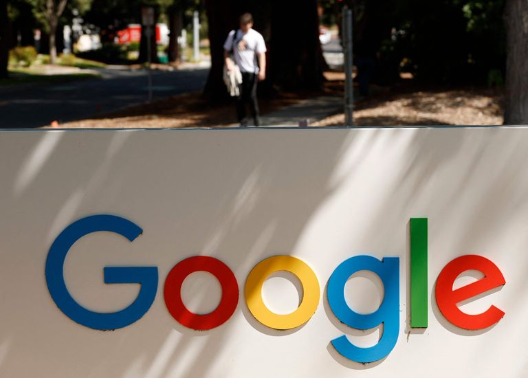 23일 캘리포니아 주 마운틴뷰에 위치한 구글 본사 건물 앞 로고. /연합뉴스