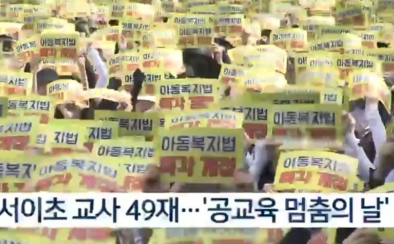 최근 나흘 사이 경기·전북 등에서 교사 3명이 스스로 목숨을 끊은 사실이 이날 행사의 불에 기름을 끼얹었다. 전북 군산, 서울 양천초 교사에 이어 3일 용인고 60대 교사 숨진 채 발견됐다.