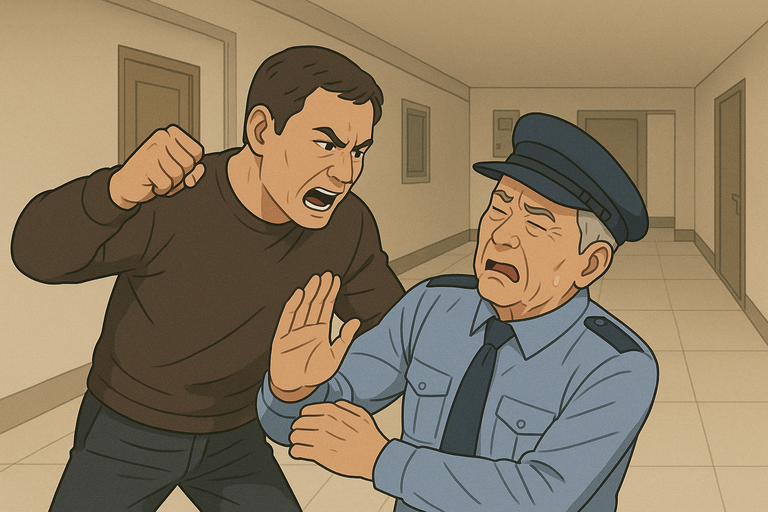 충북 충주시의 한 아파트에서 50대 입주민이 60대 경비원을 무자비하게 폭행해 전치 6주의 중상해를 입힌 사건이 발생했다.