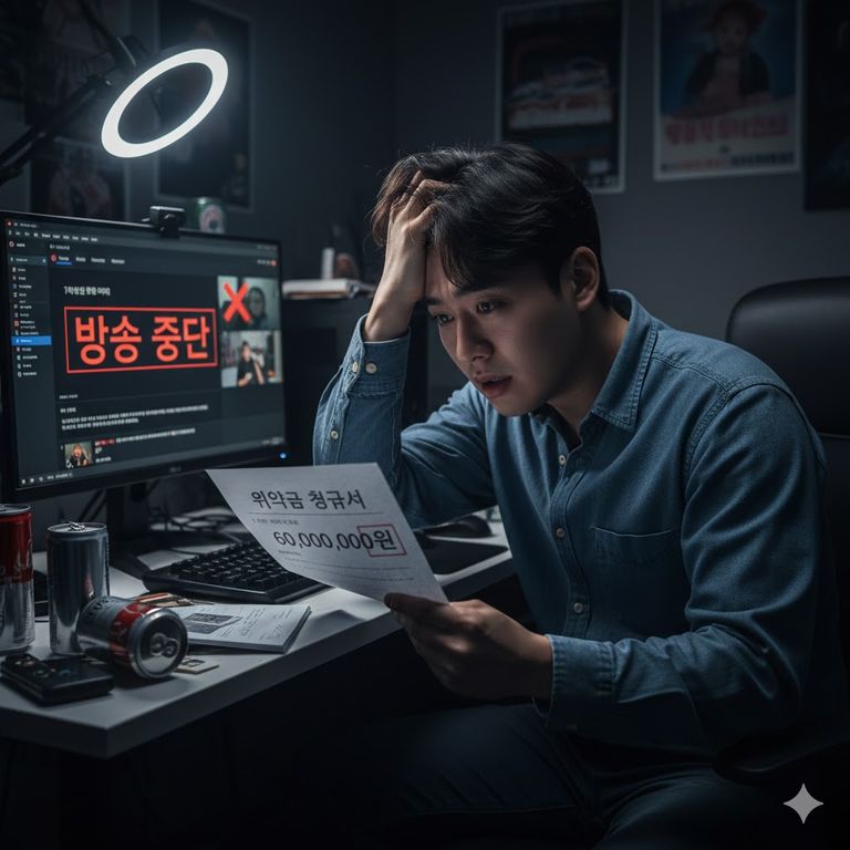 방송을 중단한 BJ에게 소속사가 계약서상 근거 없이 미래 예상 수익까지 포함한 6천만 원의 위약금을 청구했다./ AI 생성 이미지