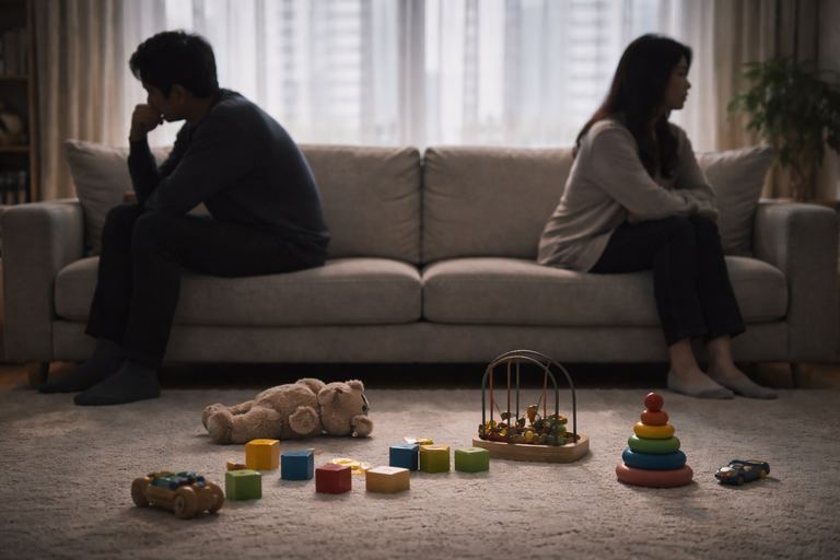 결혼 5년 차 남편이 아들의 앞에서까지 벌어지는 아내와의 폭언과 몸싸움으로 이혼을 원하지만 아내는 거부하고 있다./ AI 생성 이미지