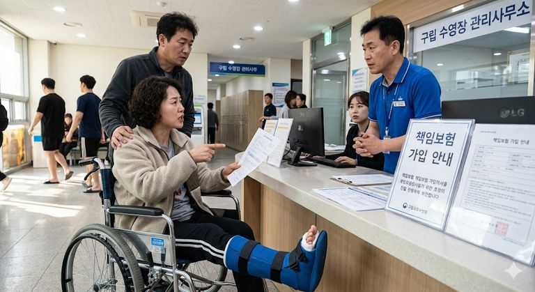 공공 수영장 강습 중 발가락이 부러져 수술까지 받은 시민이 시설 측의 보험 접수 거부에 부딪혔다. / AI 생성 이미지
