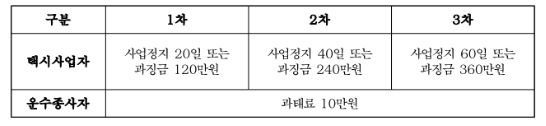 택시기사가 승객에게 반말이나 욕설, 성희롱을 하거나 불쾌감 등을 느끼게 하는 불친절 행위를 할 경우 과태료 10만원을 부과하는 식이다. 이는 지난 2015년 도입된 불친절 신고 제도로, 택시사업자에게는 1차 처분부터 사업정지 20일이나 과징금 120만원이 부과된다. 차수가 누적되면 최대 사업정지 60일 또는 과징금 360만원을 부과할 수 있다.
