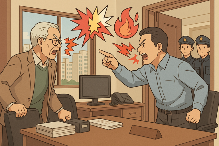 2024년 7월, 관리사무소를 찾은 B씨와 현직 관리소장 A씨 사이에 고성이 오갔다. 개인정보라며 연락처를 알려주지 않는 직원들과 실랑이 끝에 관리소장실로 들어간 B씨. 말싸움 도중 B씨가 "당신 문맹자냐"며 A씨를 자극하자, A씨의 감정도 폭발했다.