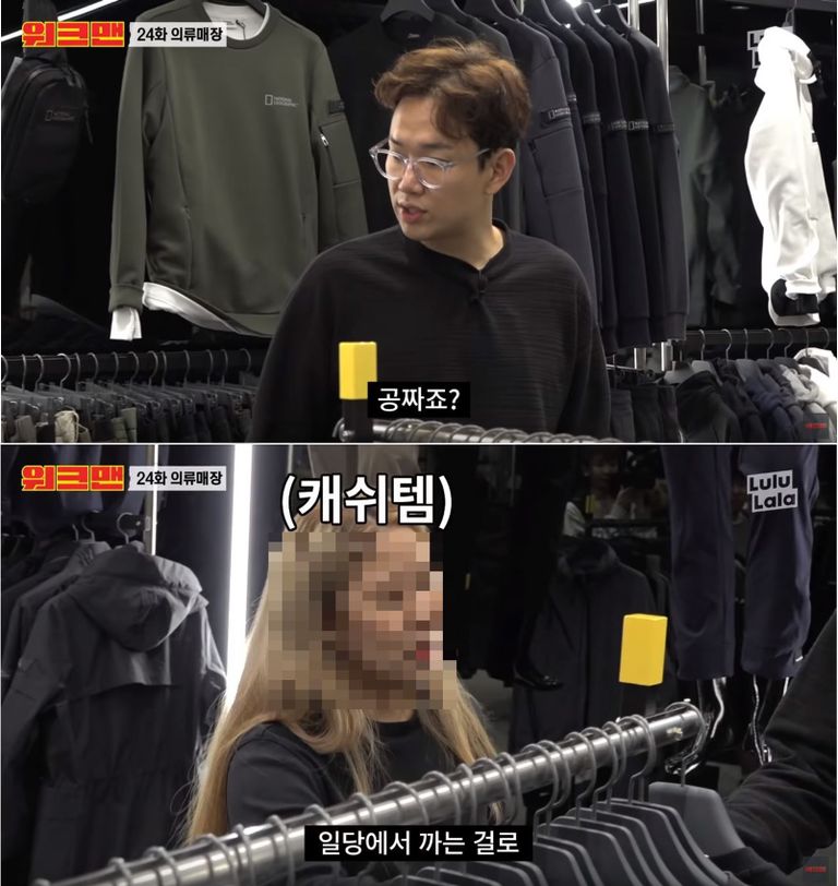 매장 아르바이트생들에게 “일을 하려면 여기서 파는 브랜드 옷을 직접 사서 입어야 한다"고 강제하는 듯한 모습을 보였다. /유튜브 채널 '워크맨' 캡처