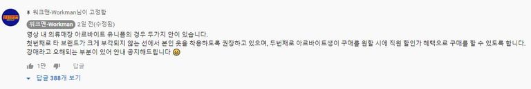 “영상 내 의류매장 아르바이트 유니폼의 경우 두 가지 안이 있습니다. 첫 번째로 타 브랜드가 크게 부각되지 않는 선에서 본인 옷을 착용하도록 권장하고 있으며, 두 번째로 아르바이트생이 구매를 원할 시에 직원 할인가 혜택으로 구매를 할 수 있도록 합니다. 강매라고 오해되는 부분이 있어 안내 공지해드립니다.”
