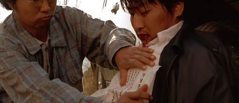 마지막 장면에서 중소기업 사장을 죽이는 조직은, 사장 동진의 가슴에 자신들이 작성한 판결문을 대고 칼을 박는다. 사적 복수를 하는 이들이지만 저 자신은 공적 복수라 믿는다. 죽어가는 동진은 판결문을 읽으려 하지만 거꾸로 박힌 판결문을 읽을 수 없다. 류의 연인 영미를 죽였기 때문이란 내용인데, 동진이 읽었다 해도 순순히 받아들이지 못했을 것이다. 똑같이 중소기업 사장 동진은 류를 죽이면서 "너 착한 놈인 거 안다. 그러니까 내가 너 죽이는 거, 이해하지?"라고 했다. 이 역시 공적 보복을 가장하는 것이고, 아이를 일부러 죽이지는 않은 류는 이해하지 못했을 것이다. 더구나 류는 듣지 못하는 사람이다.