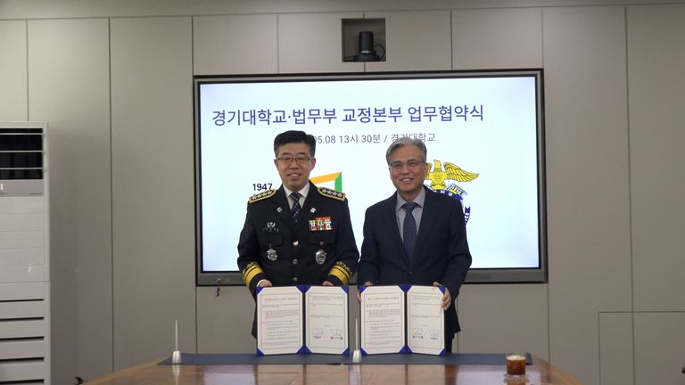 법무부 교정본부(본부장 신용해)는 5월 8일 경기대학교 총장실에서 경기대 이윤규 총장과 업무협약(MOU)을 체결했다. 이번 협약은 국내에서 유일하게 범죄교정심리를 통합적으로 연구하는 경기대와 체결된 것으로, 수형자 분류심사 제도 고도화, 인성교육의 체계화, 교정 전문인력 양성 등을 포괄한다.