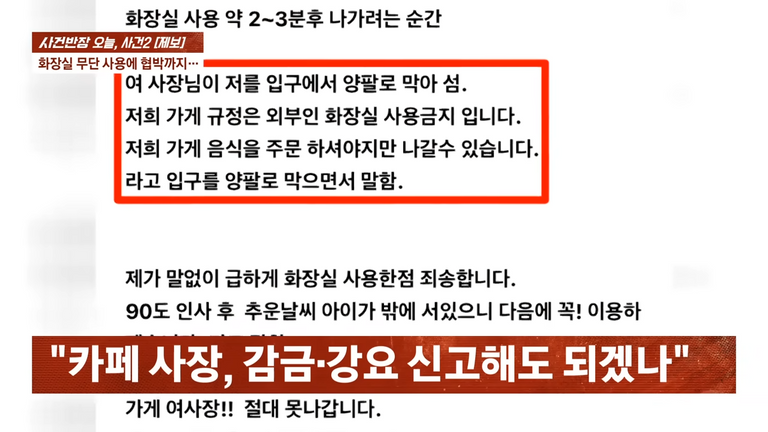 카페 화장실 이용 감금 사건…무단 이용하고 "감금" 주장한 손님, 법은 사장 손 들었다