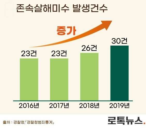 점점 증가하는 존속살해미수사건⋯지난 2016년 23건→2019년 30건으로 증가