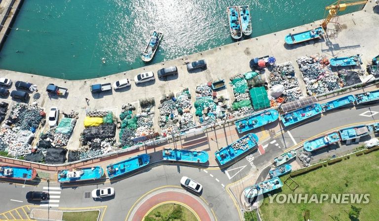 북상 중인 태풍 링링에 대비해 5일 오전 부산 해운대구 송정어촌계 소속 선박들이 도로 위로 대피해 있다. / 저작권자 (C) 연합뉴스