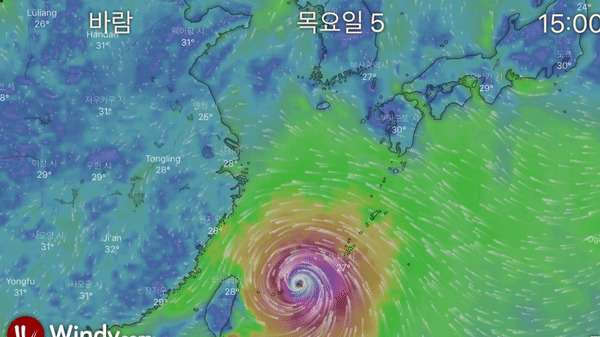 5일 오후 3시 현재태풍 링링의 모습. / 출처 : Windy.com