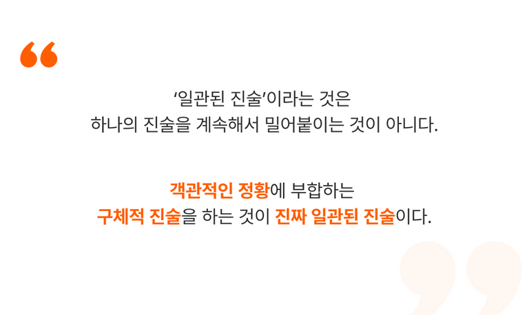 아울러 그는, 많은 이들이 오해하는 '일관된 진술'의 진짜 의미도 분명히 짚었다.