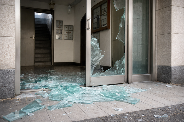 낡은 빌라 유리문이 무너져 골절상을 입은 피해자가 수리비까지 걱정하는 상황에 처했다. /챗 지피티 생성 이미지