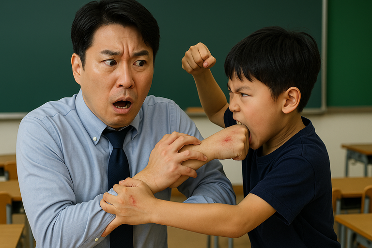 초등학교 교사 A씨가 2학년 어린이를 지도하다 팔을 물리고 주먹으로 얼굴을 맞는 피해를 당했다. /챗 지피티 생성 이미지