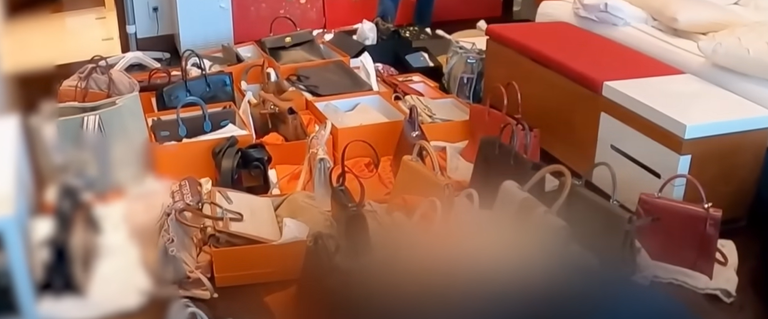 급습한 A씨의 실거주지에서는 오렌지색 상자 속에 담긴 명품 에르메스 가방 60점, 현금, 순금 10돈, 미술품 4점 등 총 9억 원어치의 은닉 재산이 발견되어 즉시 압류됐다.