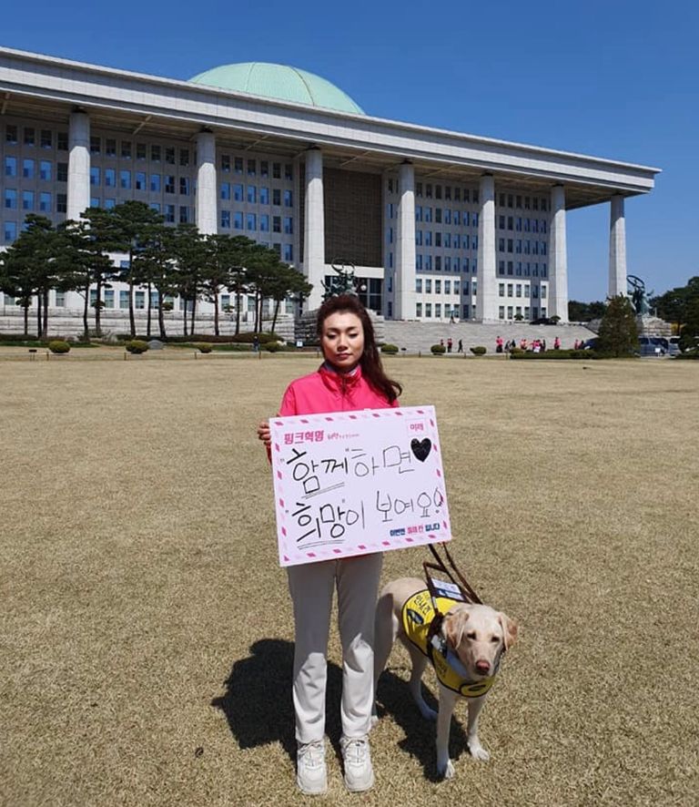 "지난 6월 제 안내견의 이름을 따서 '조이법(장애인복지법 일부개정법률안)'을 대표 발의했다. 이런 인식 보강에 초점을 맞춘 법안인데, 지금 보건복지위원회에서 (5개월째) 계류 중이다."