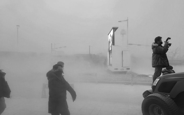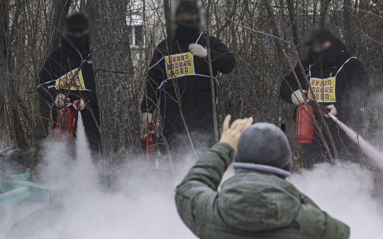 17일 오전, 인천시 중구 스카이72 골프앤리조트 앞. 도로엔 소화기 분말이 뿌려지고, 사람들 사이에선 고성과 욕설이 오갔다.