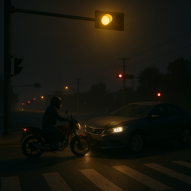 황색불에 교차로로 진입한 오토바이 운전자가 사망한 쌍방 과실 사고가 발생했다. /챗 지피티 생성 이미지