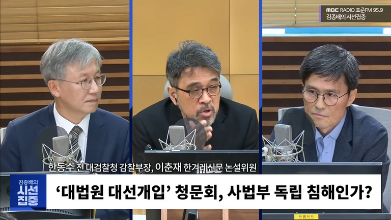 14일 MBC 라디오 <김종배의 시선집중> 출연진들은 두 사안에 대해 각각 법적 절차와 설명 책임, 사법권 독립의 균형 문제를 지적했다.