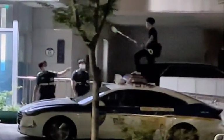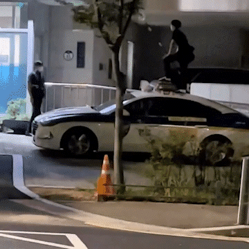 서울 강동구의 한 파출소에서 난동을 부리다 붙잡힌 취객은 만 13세에 불과한 중학생이었다. 순찰차 위에 올라타고 경찰들에게도 막대를 휘둘렀는데, 이미 18번이나 범죄 전력이 있는 상태였다. /온라인커뮤니티 에펨코리아 캡처
