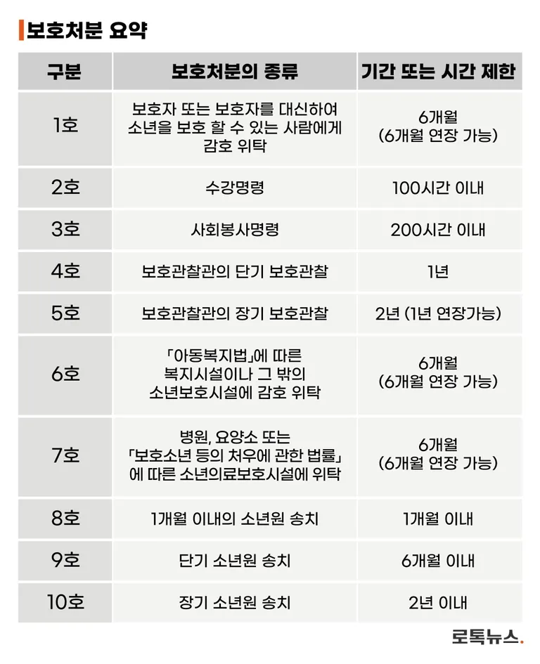 소년법상 소년보호처분의 경우, 1호부터 10호까지 나누어져 있는데 가장 무거운 처분인 10호는 '2년 이내 소년원 송치'다. 즉, A군이 가장 무거운 처분을 받더라도 최대 소년원 2년에 그치는 것이다.