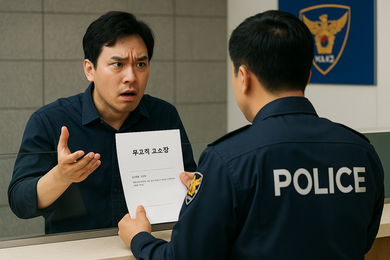 억울하게 폭행범으로 몰린 시민이 경찰로부터 '고소장이 없으면 무고죄가 안 된다'는 잘못된 안내를 받았다./챗 지피티 생성 이미지
