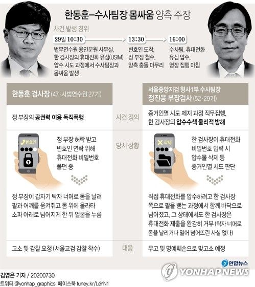 휴대전화 압수수색 중 몸싸움⋯한동훈 "독직폭행" vs. 정진웅 "증거인멸"