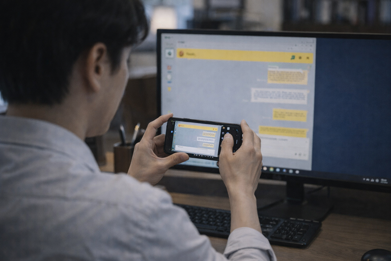 자신을 욕하는 사장의 카톡을 몰래 촬영한 직장인이 정보통신망법상 비밀침해죄로 처벌받을 위기에 놓였다. / AI 생성 이미지