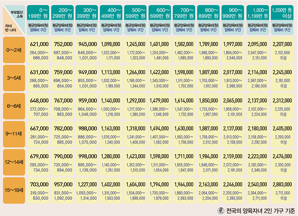 ※2021 양육비 산정기준표(서울가정법원 2021. 12. 22. 공표, 2022. 3. 1. 시행) /생활법령정보