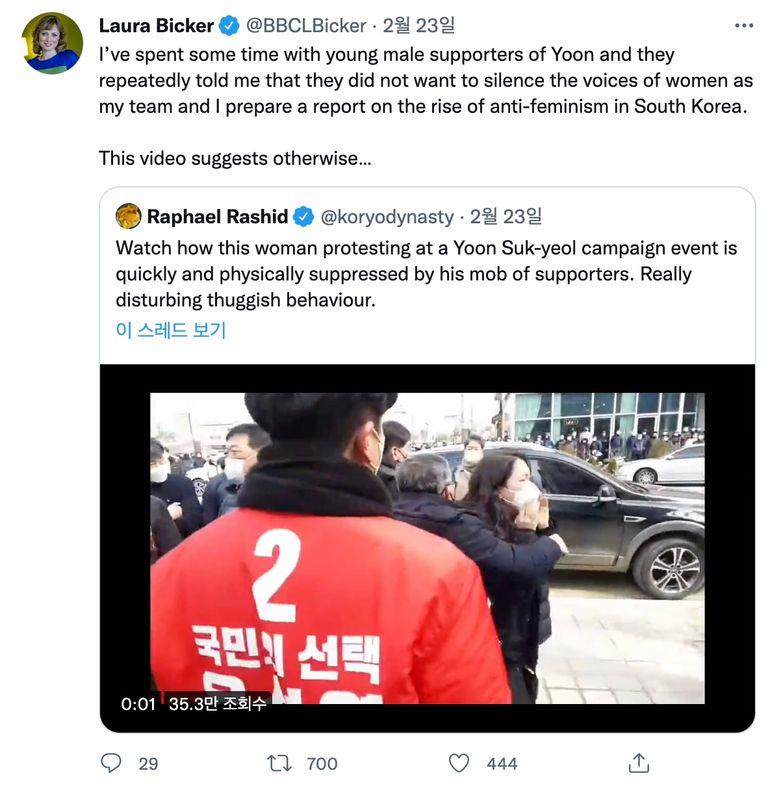 유세 현장에서 발생한 일련의 폭행 사건은 영국 공영방송 BBC 서울특파원 등 외신 기자들도 주목했다.