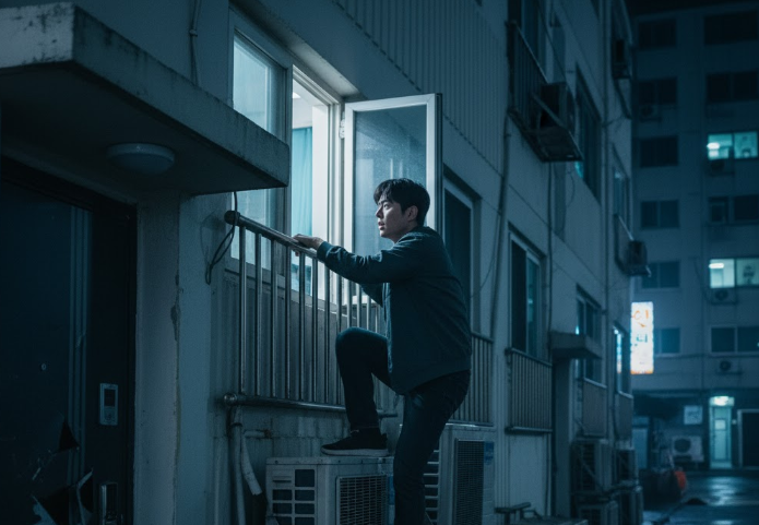 법률 검토에 따르면, 아파트 공용 공간인 엘리베이터, 계단, 복도뿐만 아니라 에어컨 실외기를 타고 올라가 침입한 행위 역시 명백한 주거침입에 해당한다. 여기에 성폭행(강간) 혐의가 인정되면 주거침입강간죄가 성립한다.