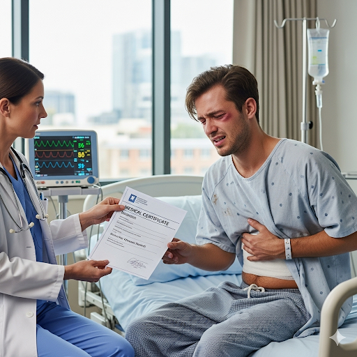 상대방의 폭행으로 갈비뼈가 부러진 A씨. 가해자를 고소하기 위해서는 꼭 비싼 상해진단서를 끊어야 할까?/제미나이 생성 이미지