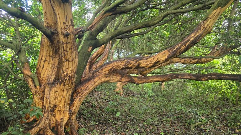 제주의 한 숲에서 100년 이상 자란 후박나무 수십 그루가 껍질이 벗겨진 채 발견돼 충격을 주고 있다. 가해자는 최대 5년 징역형까지 가능한 중범죄다.
