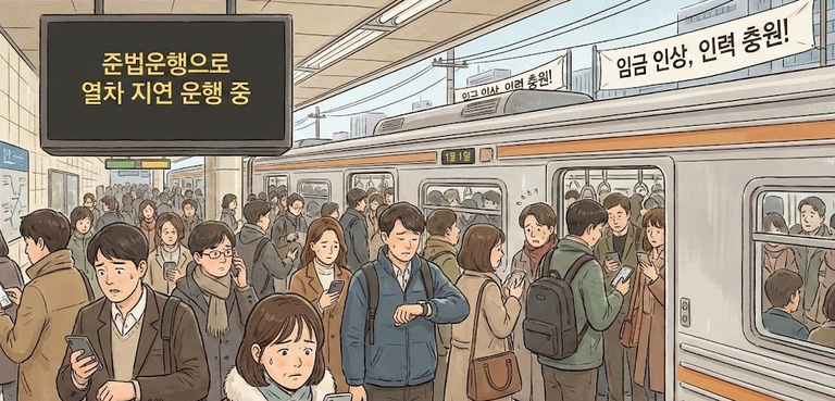지난해 11월 준법운행 당시를 되짚어보면 그 파급력을 가늠할 수 있다. 첫날에만 열차 125대가 지연됐고, 20분 이상 늦어지는 열차가 속출했다. 공사는 혼잡 역사에 인력을 추가 배치하고 비상근무조를 가동하겠다는 방침이지만, 출퇴근 시간대 '지옥철' 현상은 불가피할 것으로 보인다.