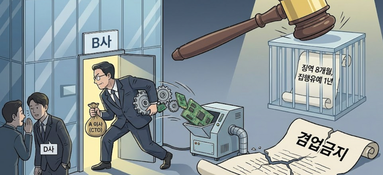 피고인 A씨는 2019년부터 B사의 사내이사로 재직 중이었으며, 2021년 6월에는 B사 대표와 사업협력(동업) 계약까지 체결한 기술총괄 이사(CTO)였다. 당시 두 사람이 맺은 계약서에는 '상대방의 사전 서면 동의 없이는 동종 및 유사 사업을 독자적으로 영위할 수 없다'는 강력한 겸업금지 조항이 명시되어 있었다.