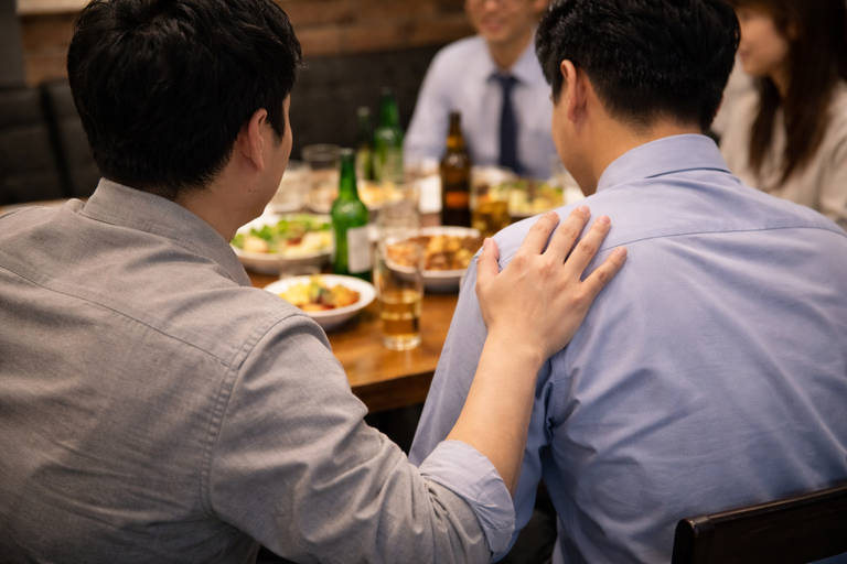 회식 자리에서 격려차 동료의 어깨를 치는 행위는 공격 의도가 없고 사회 통념상 용인된다면 폭행죄 성립이 어렵다./챗 지피티 생성 이미지