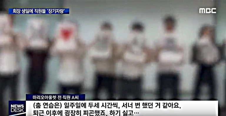 한 쇼핑몰 회장의 생일 행사에 신입사원들이 강제로 동원돼 춤 공연을 펼쳤다는 것이 알려지며 갑질 논란에 휩싸였다. /MBC 캡처