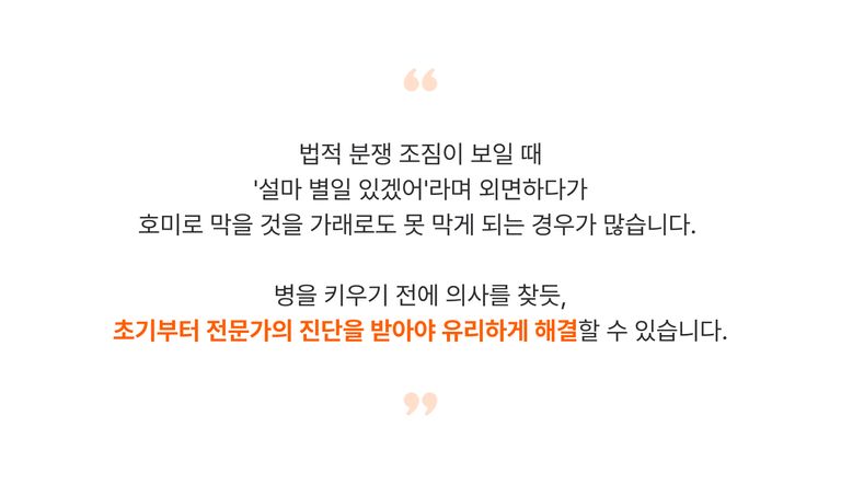 그는 예비 의뢰인들에게 "초기 대응의 골든타임을 놓치지 말라"고 당부했다.