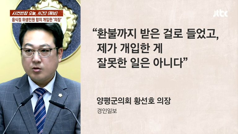 A씨가 항의하자 황 의장은 자신이 해당 식당의 오랜 단골이며 사장과 친분이 있어 연락했을 뿐이라고 해명했다. A씨는 "양평에서 사업을 하는 입장에서 혹시 불이익이 생길까 무섭고 떨렸다"고 토로했다.