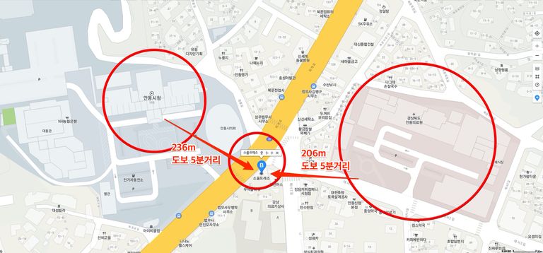 안동의료원 및 안동시청과 200여m 떨어진 곳