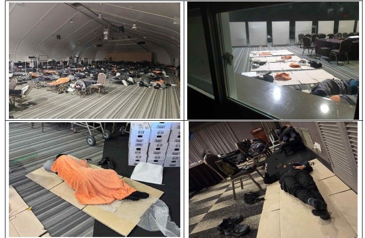 행사에 동원된 경찰관들이 '박스를 이불 삼아 쪽잠'을 자거나 '통유리 화장실' 모텔에 합숙하는 등 기본적인 복지조차 제공받지 못한 사실이 드러났기 때문이다.