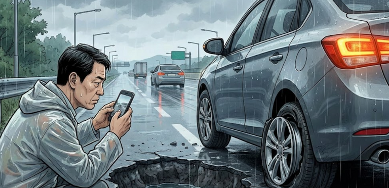 고속도로 포트홀 사고로 인한 손해배상은 사고 즉시 블랙박스 등 객관적 증거를 확보하고, 도로 관리자의 관리 소홀을 명확히 입증하는 것이 승패를 가른다. /본문의 이해를 돕기 위해 생성형 AI로 만든 이미지