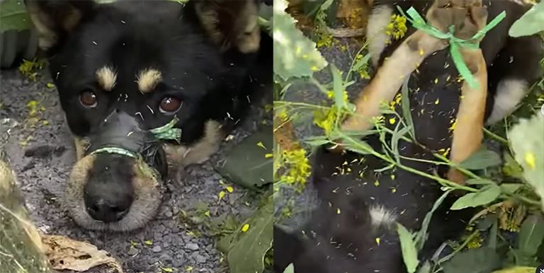 강아지한테 수갑 채운 듯…앞발은 몸통 뒤로 꺾었고, 입은 노끈으로 묶었다