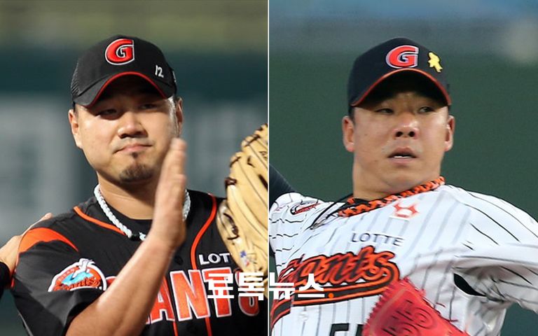 프로야구 롯데 자이언츠 간판 투수였던 송승준과 김사율이 법정에서 거짓 증언을 한 혐의로 기소돼 1심에서 집행유예를 선고받았다. /연합뉴스·편집=조소혜 디자이너