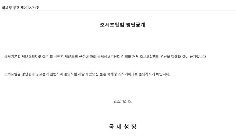 유죄 판결 확정된 조세포탈범 47명도 함께 게시