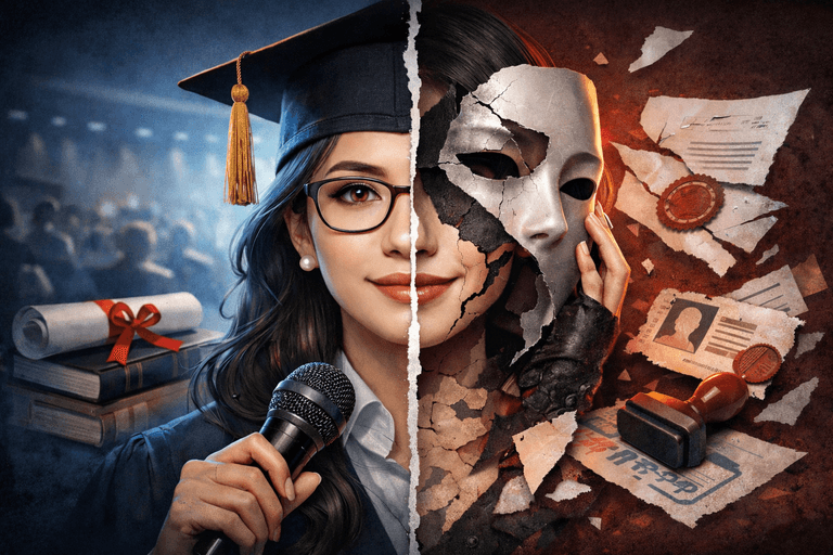 - 위조된 문서: 아내가 보여줬던 가짜 학위 증명서, 재직 증명서 등